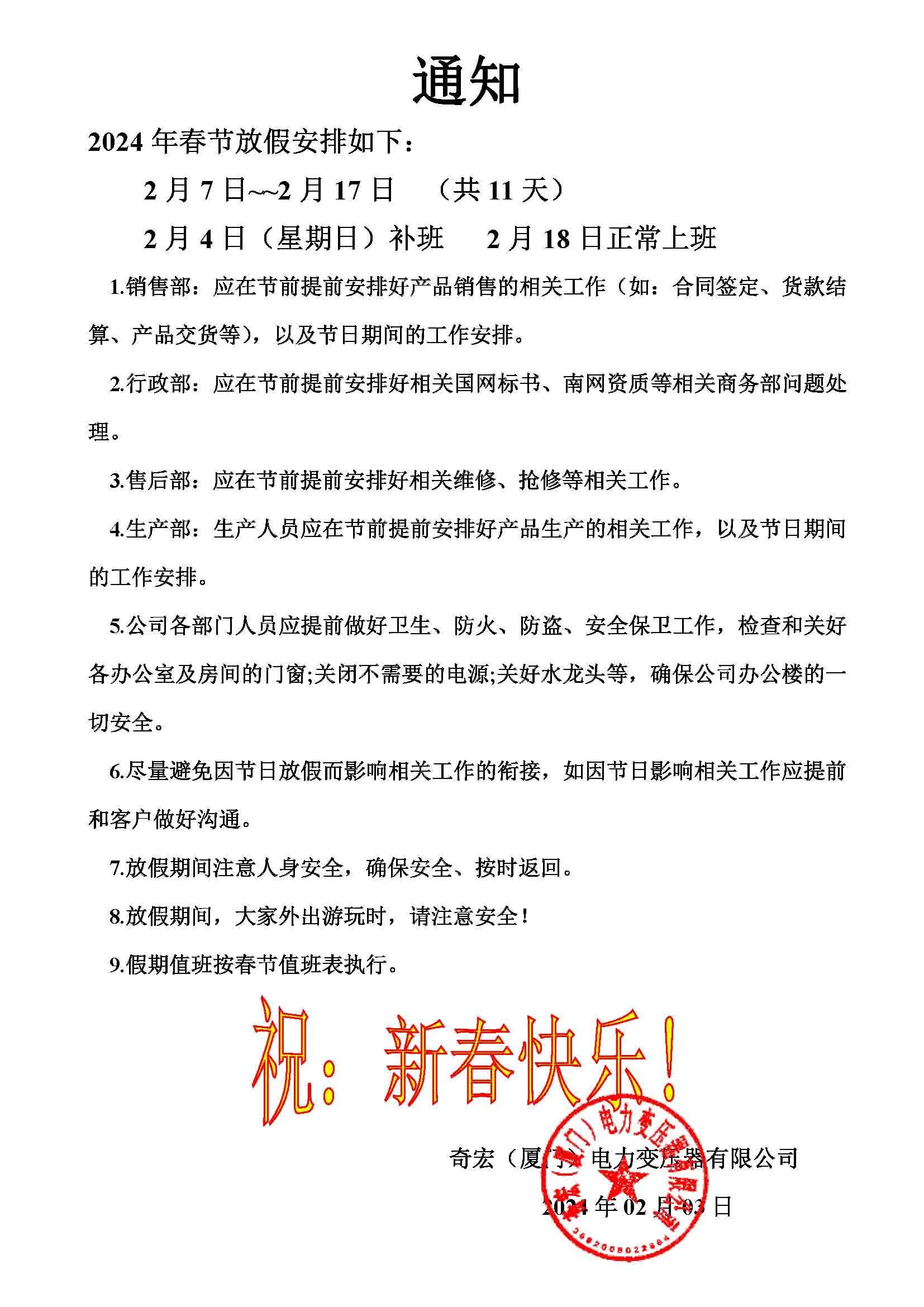 9.假期值班按春节值班表执行。