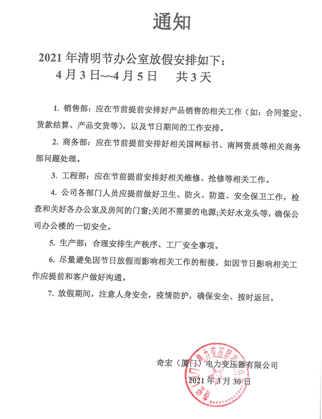 3.尽量避免因节日放假而影响相关工作的衔接,如因节日影响相关工作应提前和客户做好沟通。